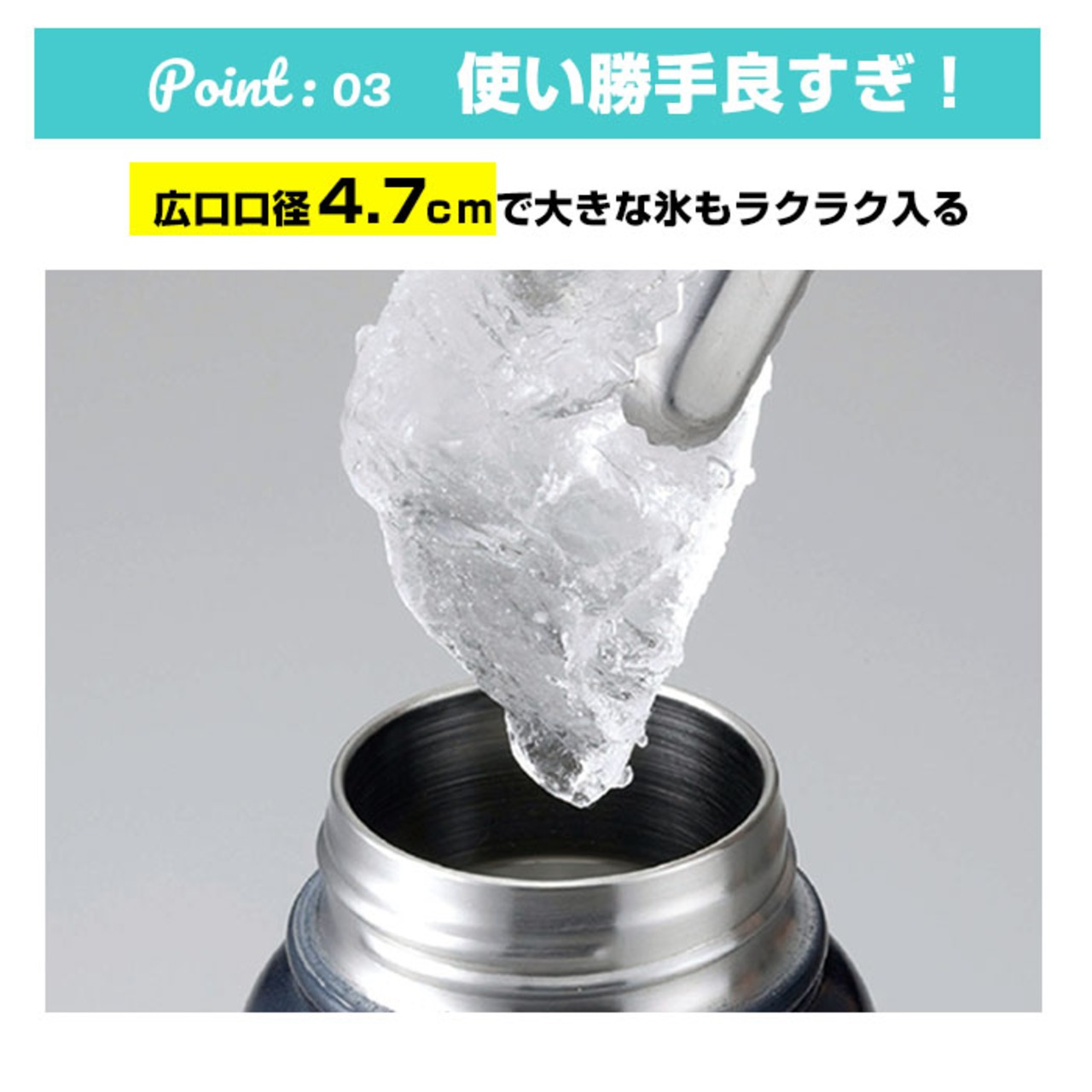 ・口径4.7cmの大きめタイプだから氷もラクラク入れられる♪