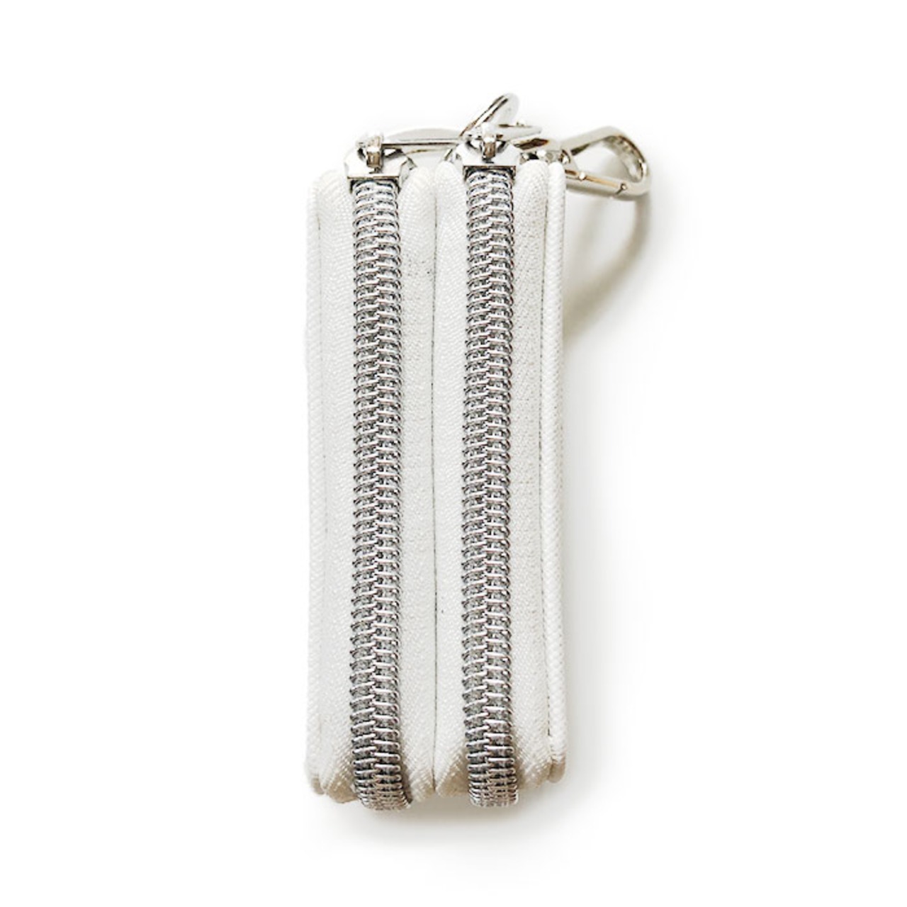 ・ファスナールームが前後2つに分かれたダブルルーム仕様。ケース内部は、どちらも自動車のスマートキーがちょうど収まるサイズ。