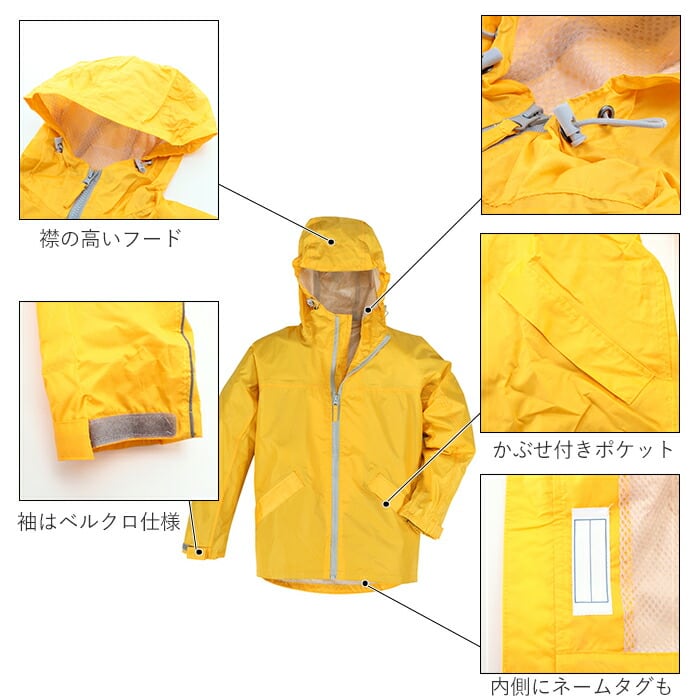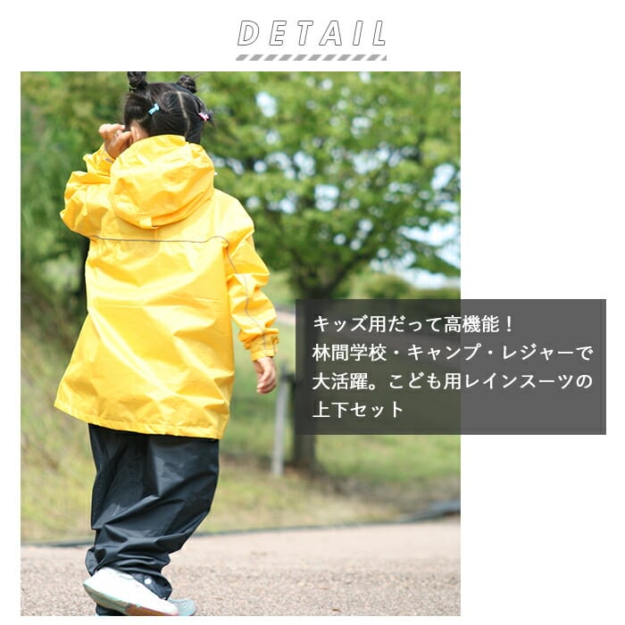 ・キッズ用だって高機能!林間学校・キャンプ・レジャーで大活躍。こども用レインスーツの上下セット。