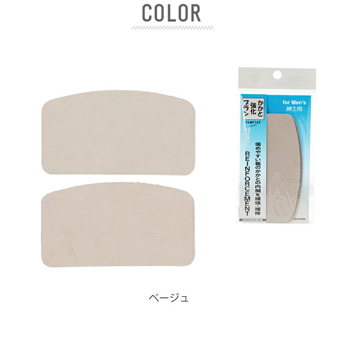 ・どんな色合いの靴に貼り付けても違和感がなく、目立たない自然な色合い。素材は天然皮革なので、安心。