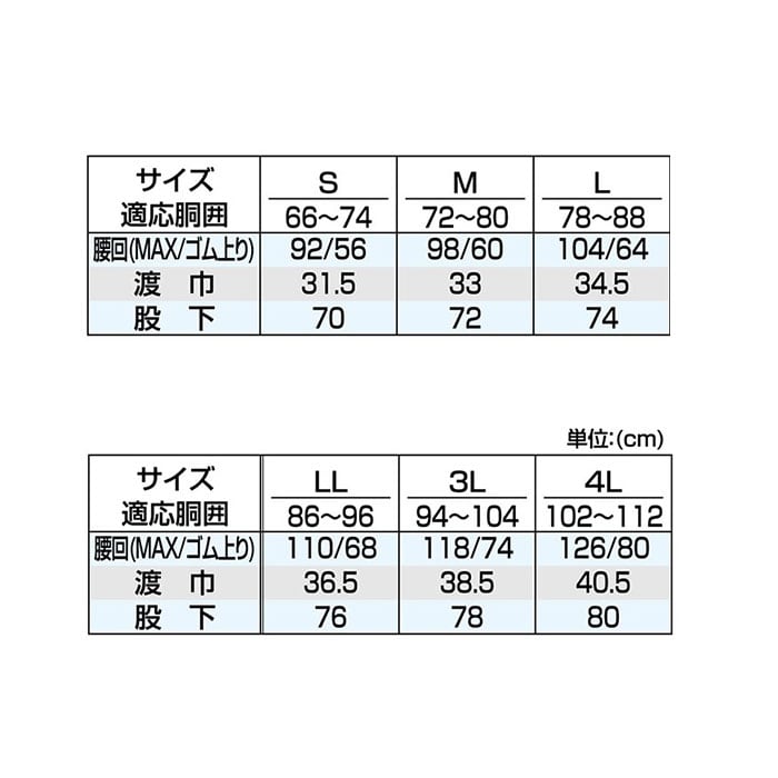 [適応胴囲]約102cm〜112cm [股上]約35cm [わたり幅]約40cm [すそ周り]約48cm