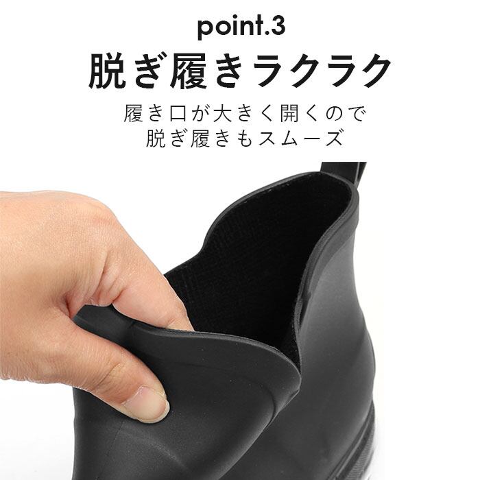 ・雨水をブロックし雨の日も雪の日も足元を気にすることなく安心して履ける。