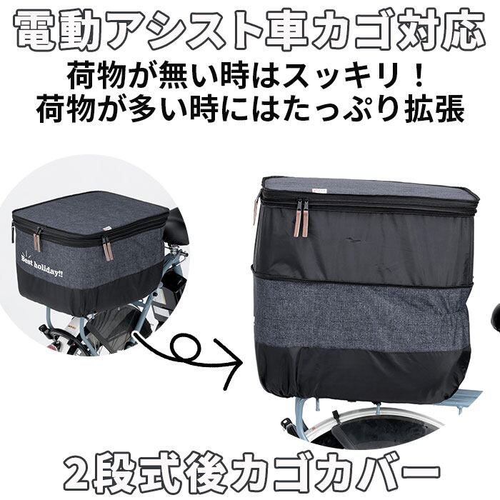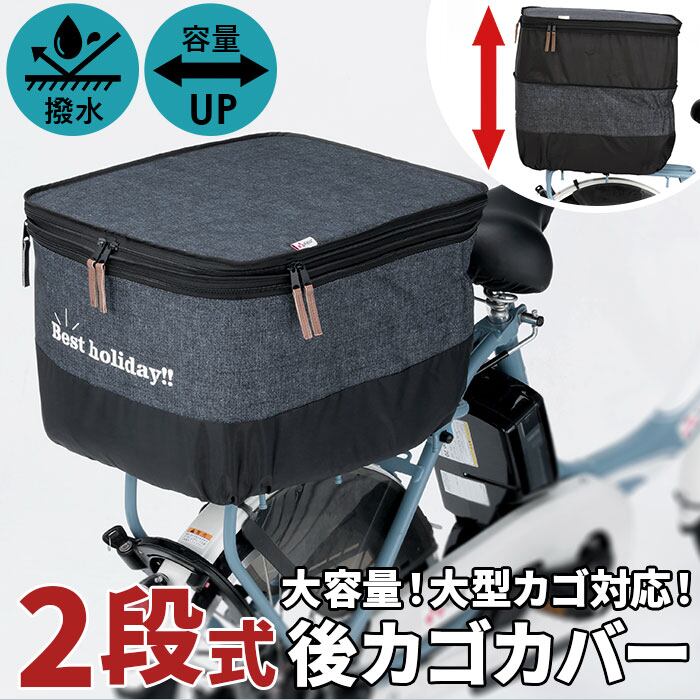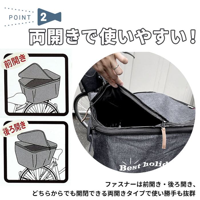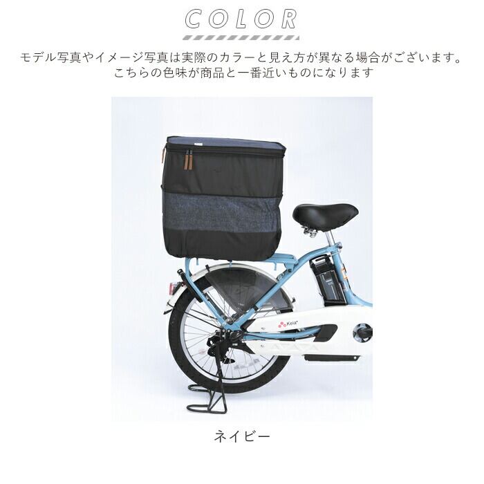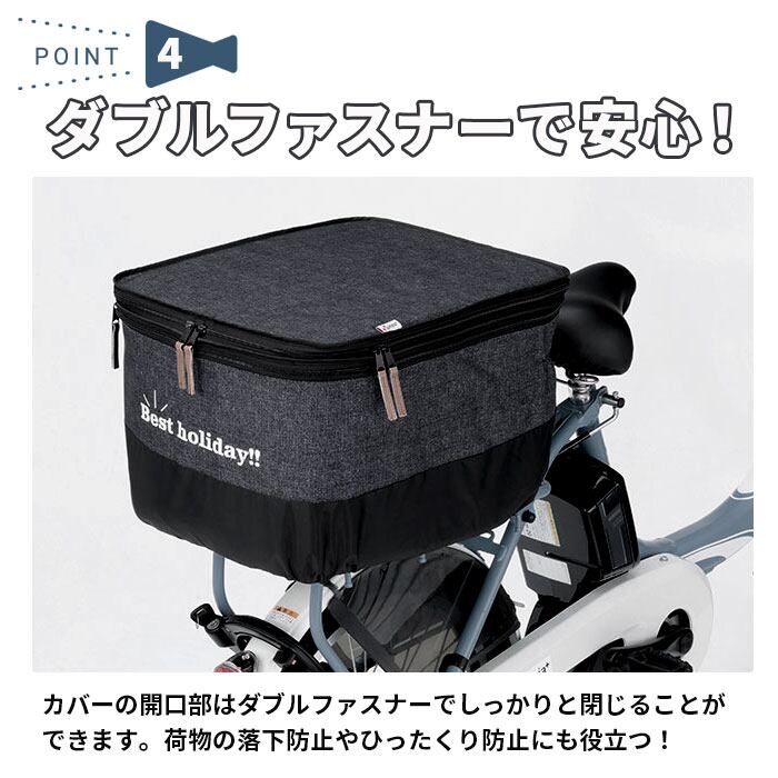 ・自転車での通勤時や、お子様の送り迎えの時にも大活躍!大切な荷物を雨やひったくりから守る、自転車用2段式デニム調後ろカゴカバー。