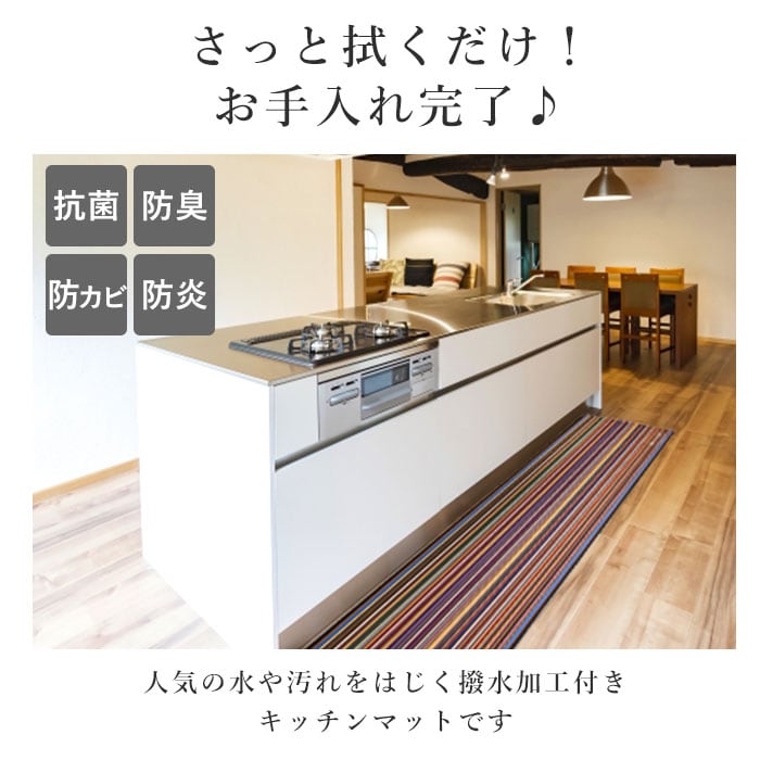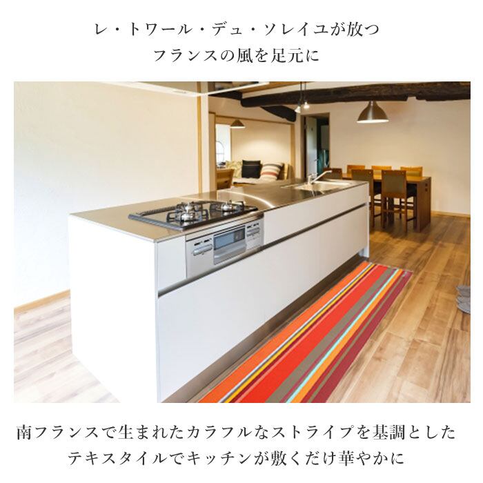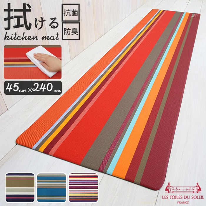 キッチンマット 拭ける 通販 240cm おしゃれ マット 台所マット 台所用マット 240センチ インテリア 45×240 キッチンファブリック 新築祝い ギフト お手入れ簡単 防カビ 防炎 抗菌 防臭 撥水 はっ水 ストライプ PVC 塩化ビニル樹脂 フランス ブランド レトワール