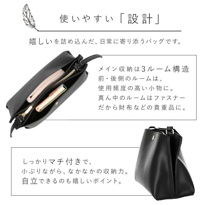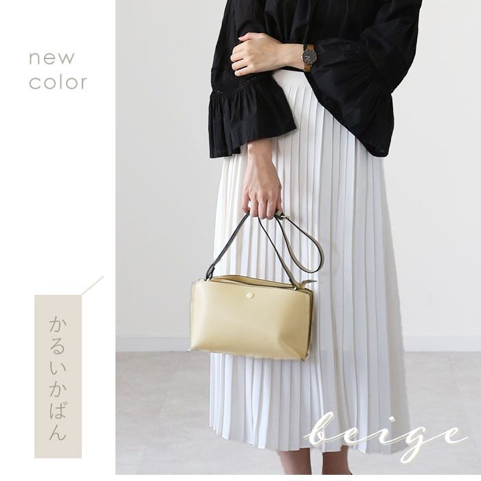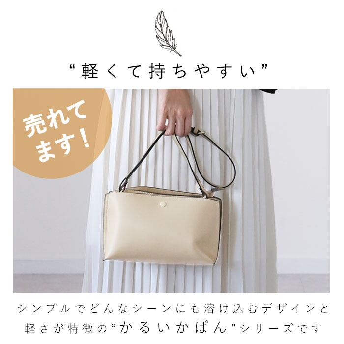 ・軽量の張り合わせ合皮を素材に使用した、軽くて持ちやすい、軽量化にこだわった「かるいかばん」。フォーマルな場所でもカジュアルでも、オンオフで使える!ちょっと大人めミニショルダーバッグ。