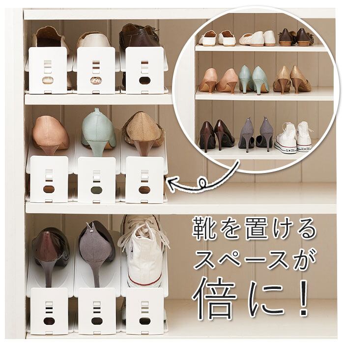 ・玄関の靴箱スペースを有効活用できるシュースペースセーバー6個セット。