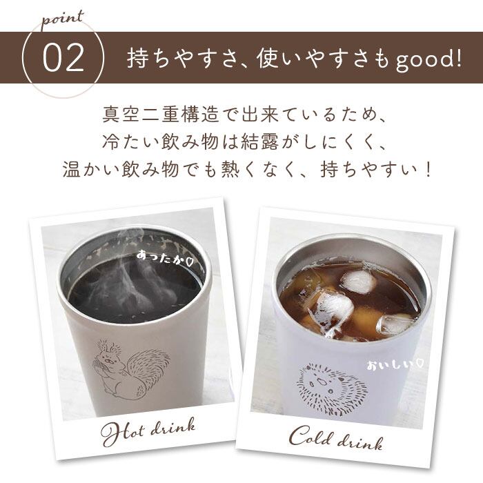 ・飲み頃温度をキープする真空断熱構造の蓋付きタンブラー。
