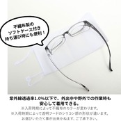 ・くもり止めコートを施しているため、いつも快適、クリアに見える!さらに、紫外線透過率1.0%以下で、外出中や野外での作業時も安心して着用できる。