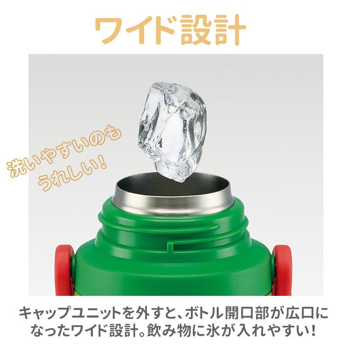 ・キャップユニットを外すと、ボトル開口部が広口になったワイド設計。飲み物に氷が入れやすく、忙しい朝の水筒の準備がラクラクできる!