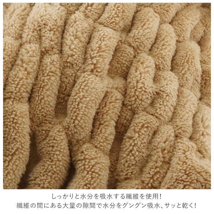 ・しっかりと水分を吸水する繊維を使用!繊維の間にある大量の隙間で水分を一時的にため込んで、グングン吸水、サッと乾く!