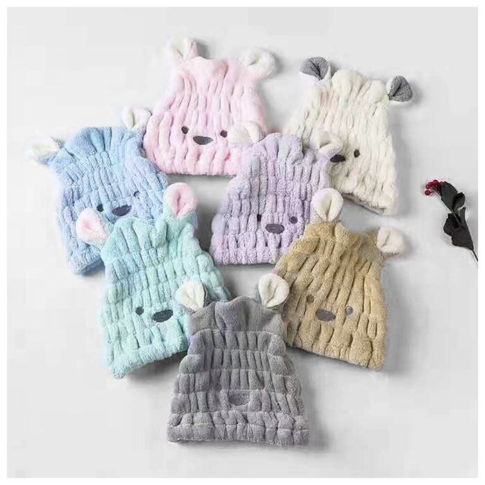 ・お風呂上がりはふわふわクマさんとウサギさんで気持ちよくヘアドライ!ふわふわな肌触りが気持ちいい…キッズ用タオルキャップ。