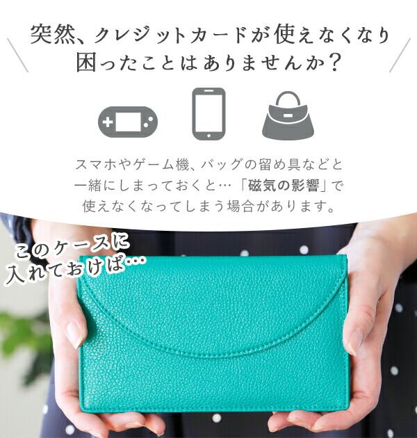 磁気ストライプ保護機能で大切なキャッシュカードやクレジットカードを守る通帳ケースです。キャッシュカードやクレカなどを磁気を発する携帯電話やポータブル音楽プレイヤー、携帯ゲーム機などと一緒にバッグに入れておくと、磁気の影響で使えなくなってしまう場合があります。この通帳ケースに入れれば、外部の磁気からカード類を保護することはもちろん、カードだけでなく通帳の磁気機能も保護できます♪