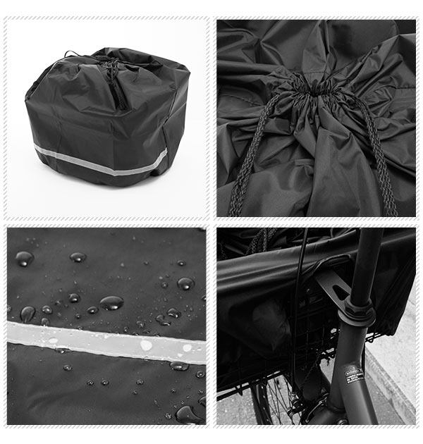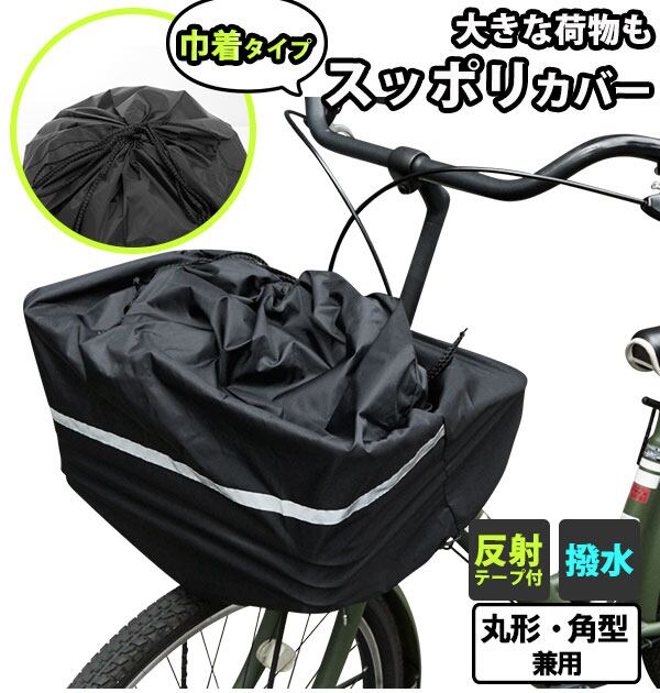 ひったくり・雨濡れ防止に!安全バスケットカバー☆大きな荷物もすっぽりカバー、雨やほこりを防ぎます。夜間にも安全な反射テープ付。標準的な自転車の丸カゴ角カゴにご利用頂けます。