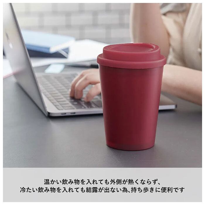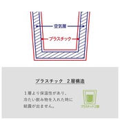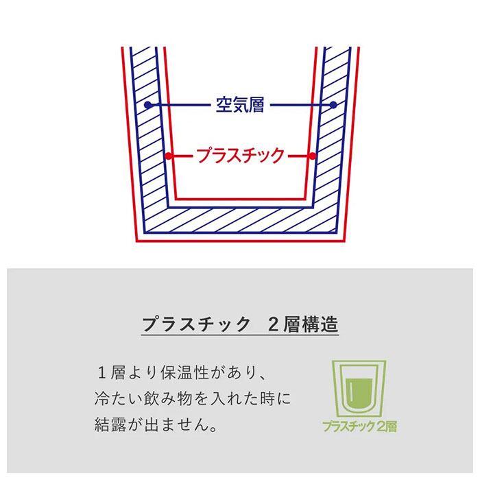 ・プラスチック2層構造なので保温性があり、温かい飲み物を入れても外側が熱くならず、冷たい飲み物を入れた時には結露が出にくい!