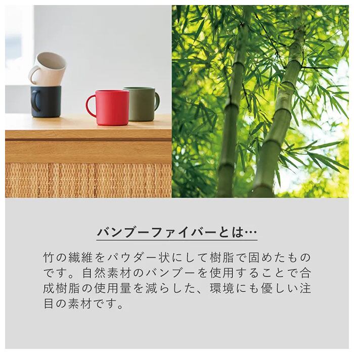 ・プラスチックのように軽いバンブーファイバー素材を使用。丈夫で割れにくいので、長く愛用できる◎(※バンブーファイバーとは竹の繊維をパウダー状にして固めたもの。自然素材の竹を混ぜ込むことで、合成樹脂の使用量を減らした環境に優しいエコ素材。)