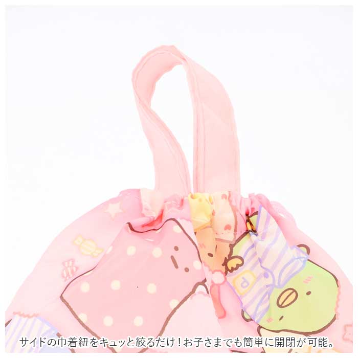 ・サイドの巾着紐をキュッと絞るだけ!お子さまでも簡単に開閉が可能。
