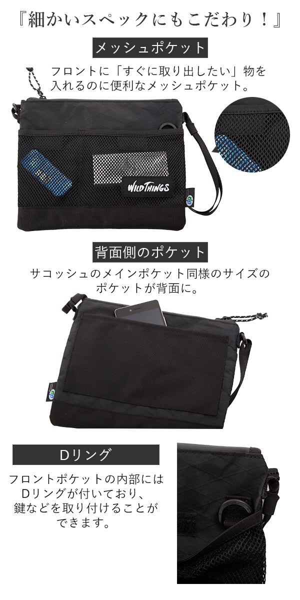 ワイルドシングス サコッシュ 通販 メンズ レディース ブランド WILD THINGS 小さめ おしゃれ ショルダーバッグ 斜め掛け 軽い 軽量 サコッシュバッグ ミニショルダー ミニバッグ ミニ ショルダー サコッシュショルダー X-PAC ナイロン 耐水 スポーツ アウトドア キャンプ