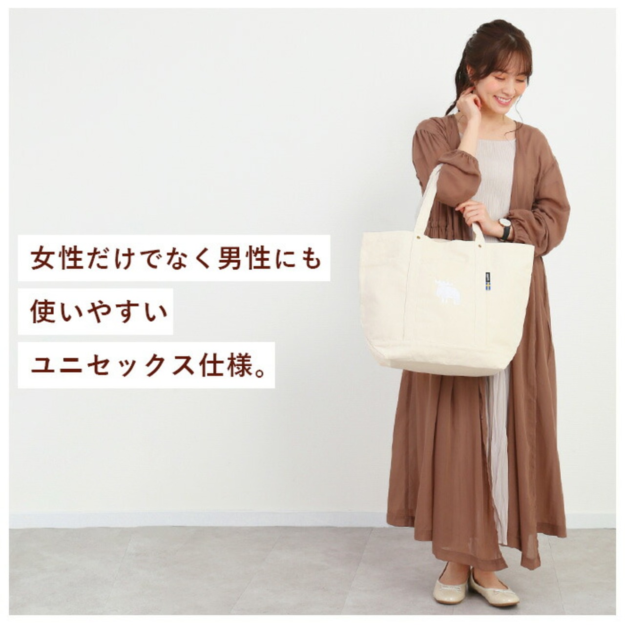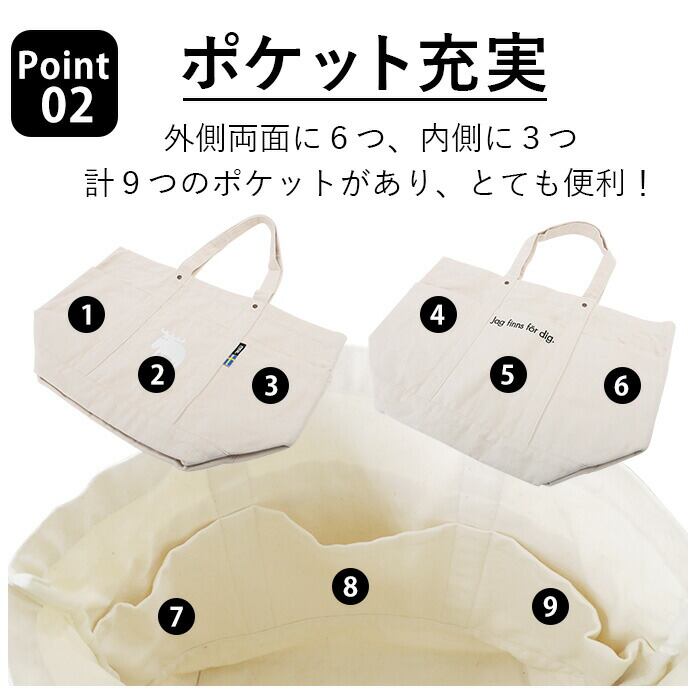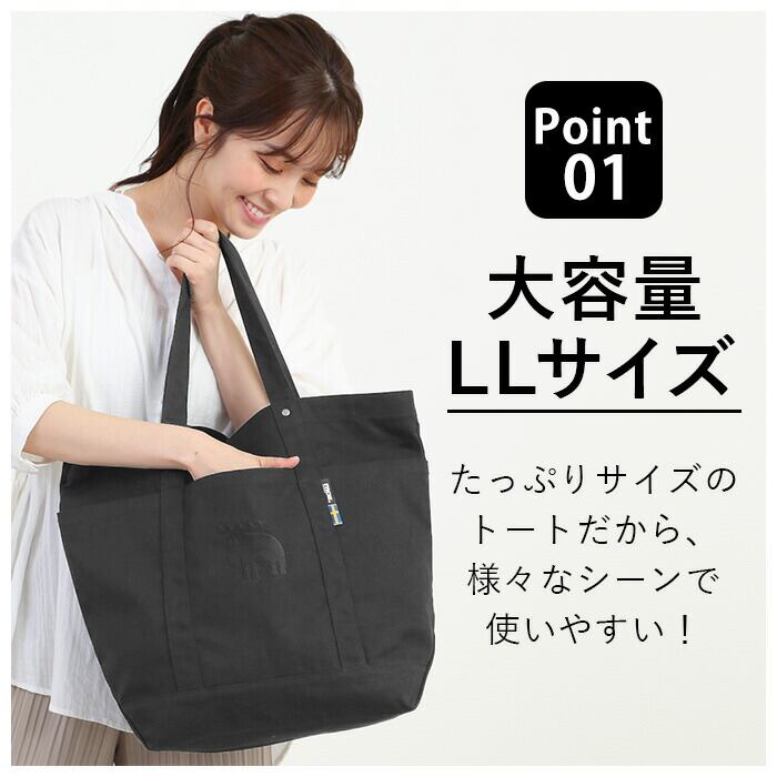 ・バッグの生地は、目が細かく、素朴でやさしい手触りが魅力のキャンバス素材。たっぷりLLサイズのトートだから、様々なシーンで使いやすい!