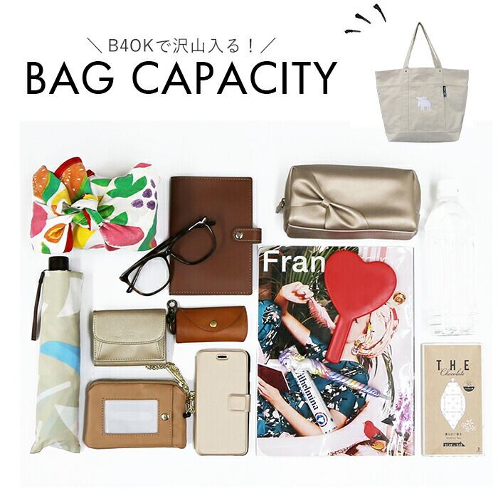 ・メイン収納スペースは、B4サイズがすっぽり入るサイズ感で通勤・通学用トートやママバッグにオススメ。ランチボックスやペットボトルもしっかり収納。