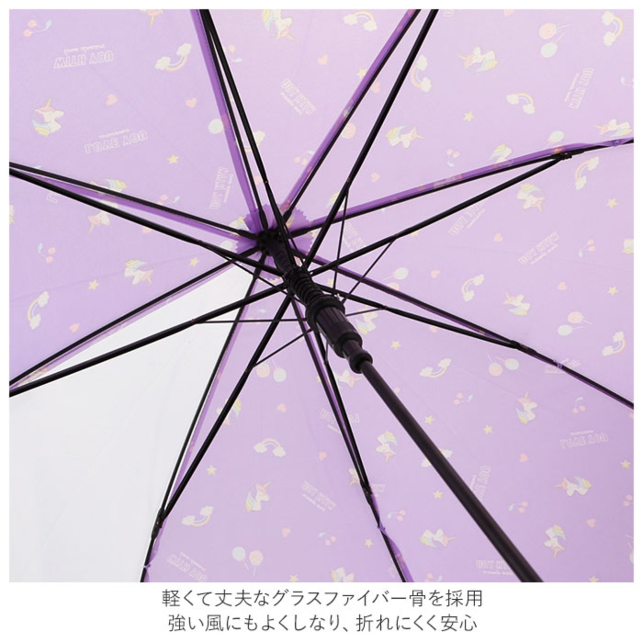 ・軽くて丈夫なグラスファイバー骨を採用。強い風にもよくしなり、折れにくく安心。