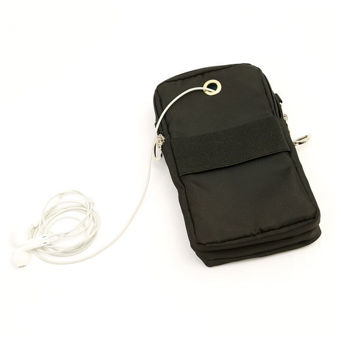 ・背面のラウンド型ホールにイヤホンコードを通せば、ウォークマンやipodをポーチに収納したまま音楽を楽しめる。