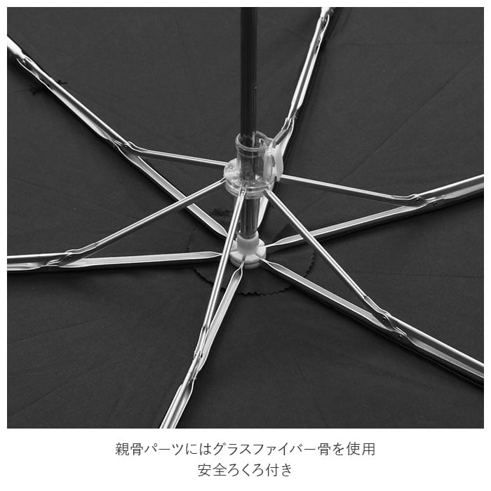 ・親骨パーツには軽くて丈夫なグラスファイバー骨を使用。しなやかな弾力性で強い風の日でも安心。