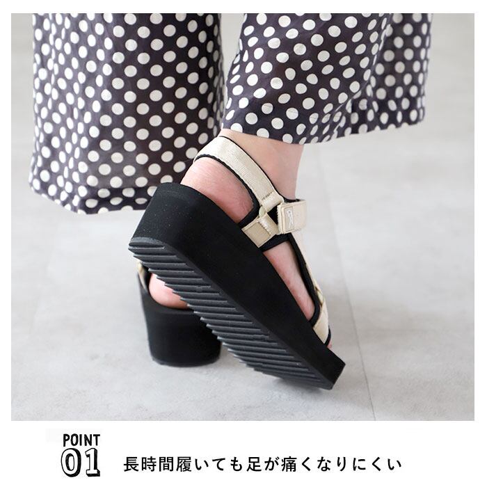 ・厚底ウェッジソールタイプだからスポーティになりすぎず、タウンユースにぴったり。