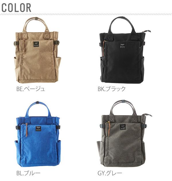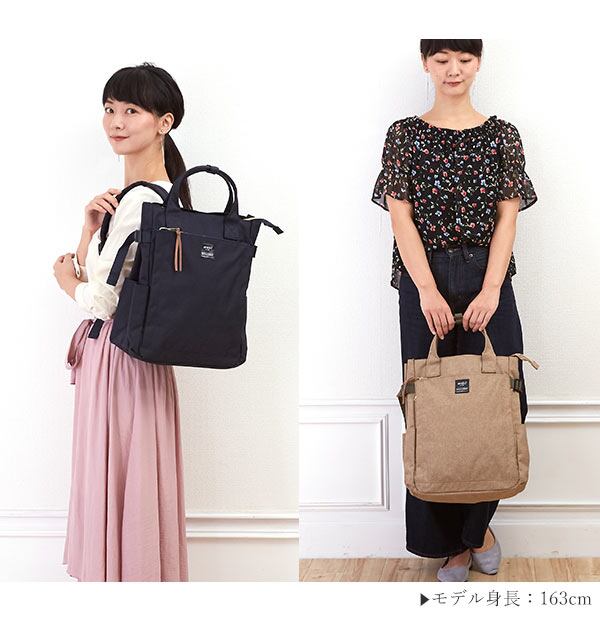 杢調ポリキャンバスがカジュアルな雰囲気を演出した、多機能2wayリュックです。肩紐の端は金具で簡単に付け外しでき、外した肩紐を背面ポケットに収納すればトートとして使えます。