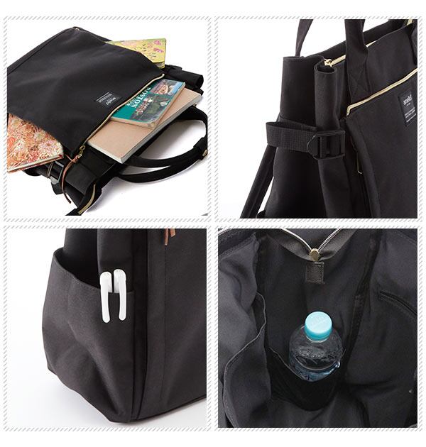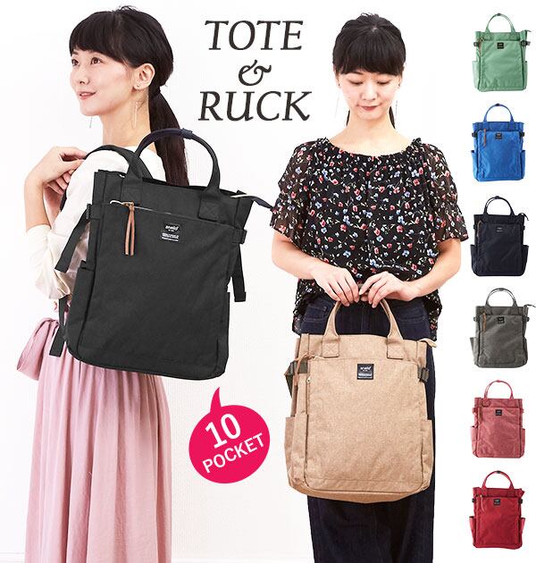 anello アネロ 杢調ポリキャンバス 10ポケット2WAYリュック