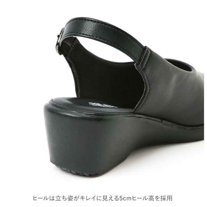 ・ヒールは立ち姿がキレイに見える5cmヒール高を採用。ヒールには優しく足を支えてくれる木芯を内蔵しかかとの衝撃と疲労を軽減してくれる。