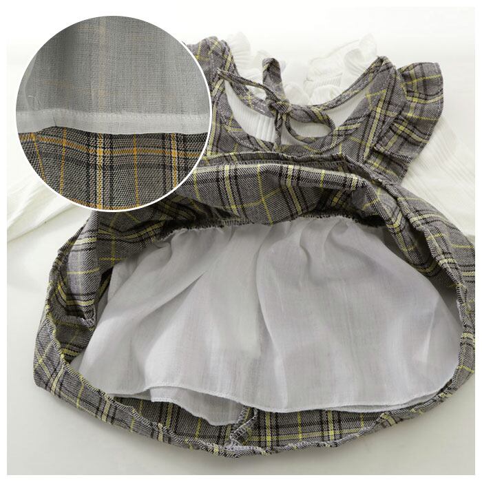 ・お揃いのヘアバンドとセットになったベビー・子供用ワンピース。チェック柄のフォーマルなデザインで、赤ちゃんのお出かけ、入園式、七五三、お受験等様々なシーンで活躍!