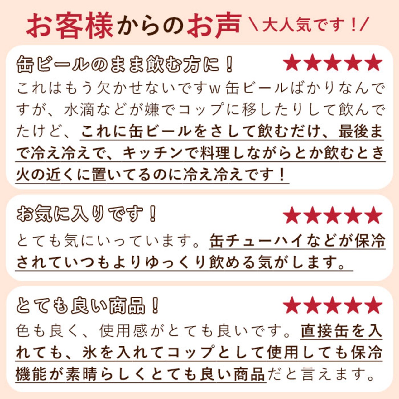 ・真空二重構造でしっかり温度をキープしてくれるので、缶飲料を最後までおいしく飲めちゃう画期的なアイテム!