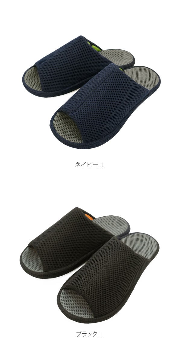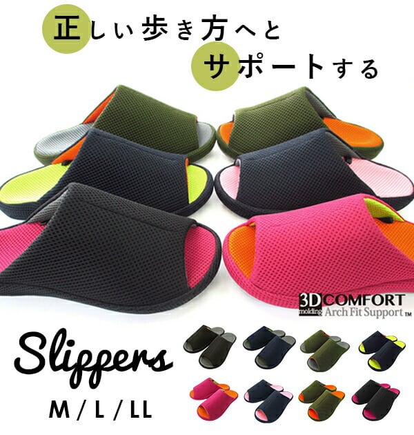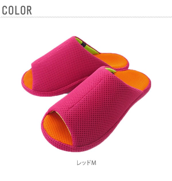 メッシュタイプの、足に優しい3次元構造のソールで安定させたスリッパです。つま先が上がっていることにより、負担を軽減し蹴りだしやすい形状で、3D構造が負荷を分散。約3.5cm弱の底の厚さで、クッション性に優れたEVAソールを使用しています。快適な室内履きをお探しの方に。