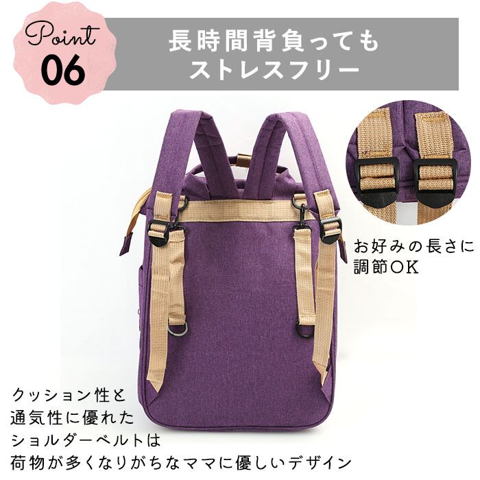 ・容量20Lで収納スペースがしっかりとあるので、タオルやおむつなど、赤ちゃんに必要なものをたっぷり持ち運べてとっても便利♪