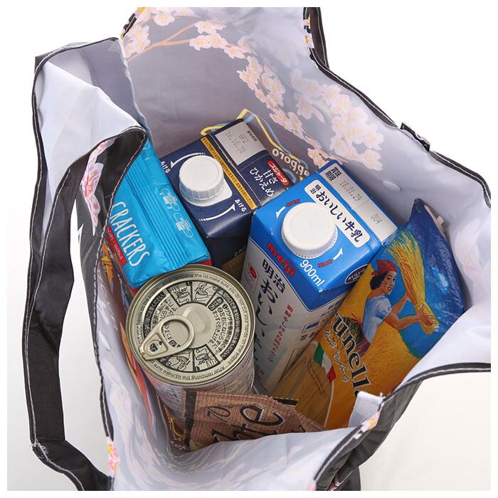 ・厚手のポリエステル素材を使用し、耐荷重約3kg・容量約15Lと、毎日のお買い物にもぴったりなサイズ感。