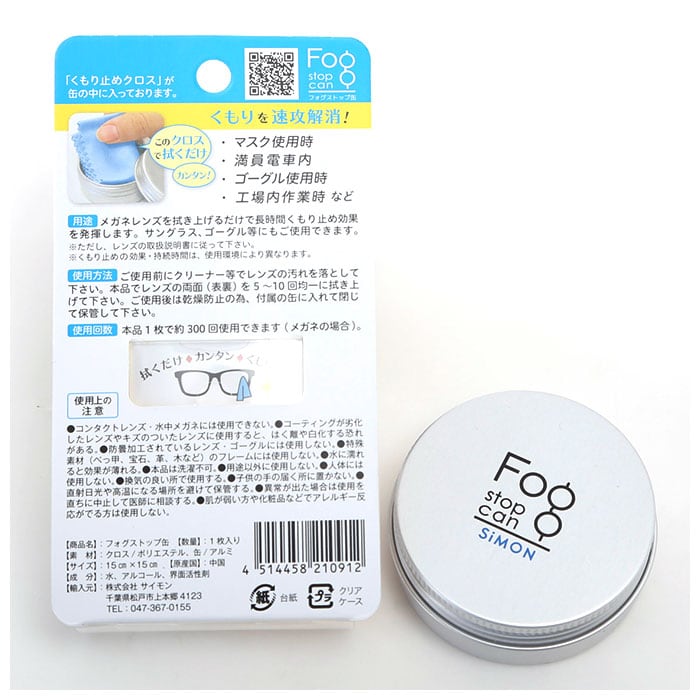 サイモン フォグストップ缶 通販 フォグ ストップ クロス 曇り止め メガネ くもり止めクロス メガネ拭き 拭くだけ 眼鏡 布 めがね 花粉メガネ くもりどめ めがね拭き クロスタイプ 眼鏡用曇り止め