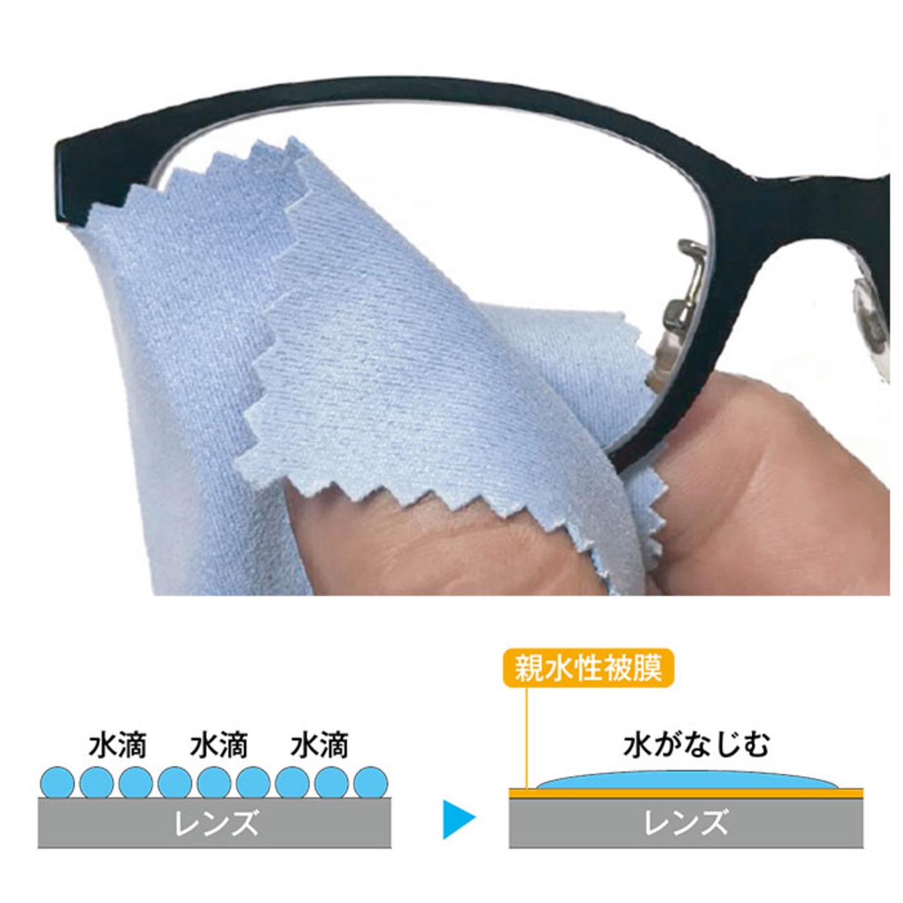 ・クロス両面に含まれる成分がレンズ表面に親水性被膜を作り、レンズがくもらなくなる。