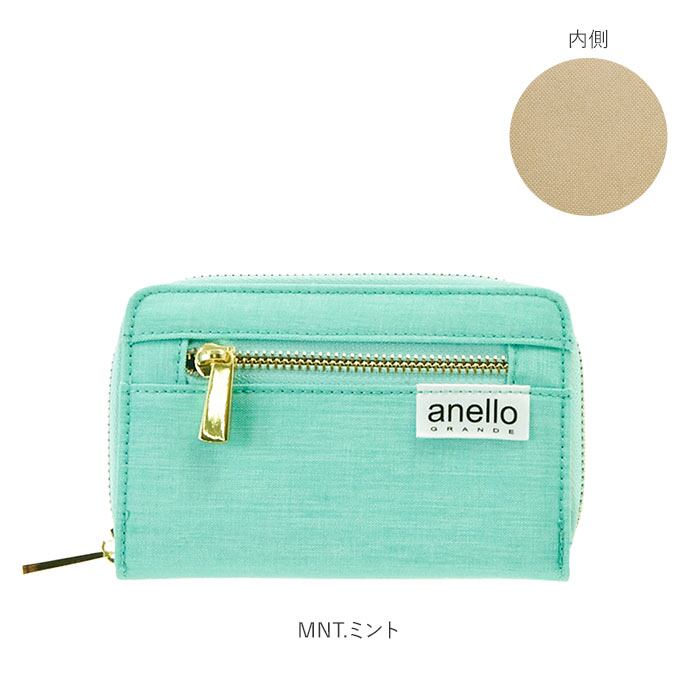 ・大人気anello!ベーシックなイメージをクローズアップした「GRANDE」シリーズより、上品な光沢感のある生地を使用したラウンドジップ折り財布が登場