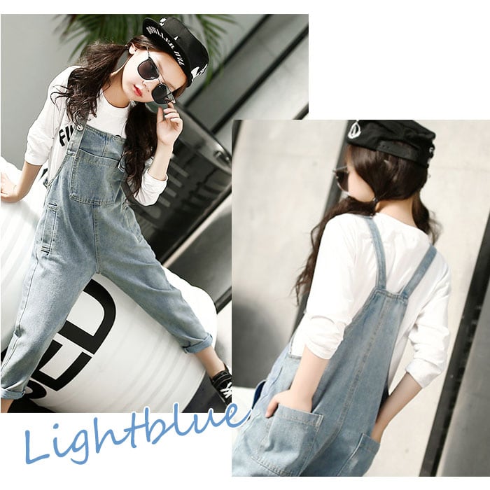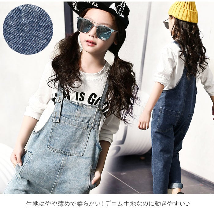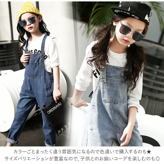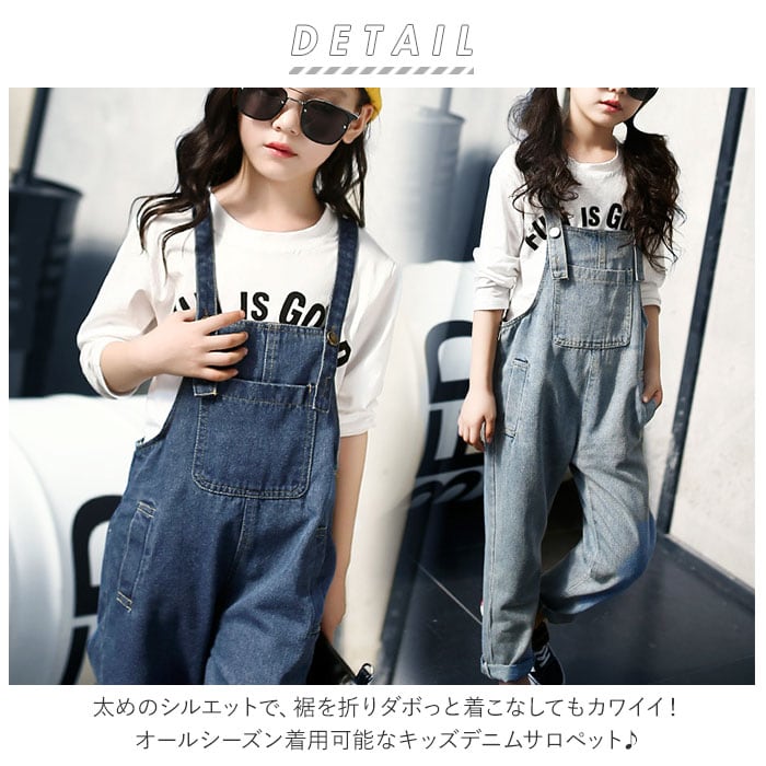 ・太めのシルエットで、裾を折りダボっと着こなしてもカワイイ!オールシーズン着用可能なデニムサロペット♪