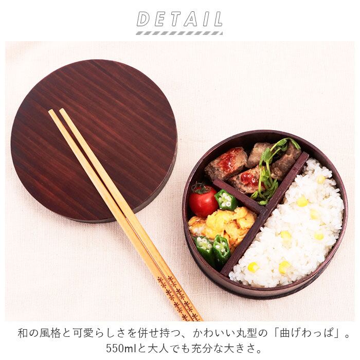 ・和の風格と可愛らしさを併せ持つ、かわいい丸型の「曲げわっぱ」。550mlと大人でも充分な大きさ。