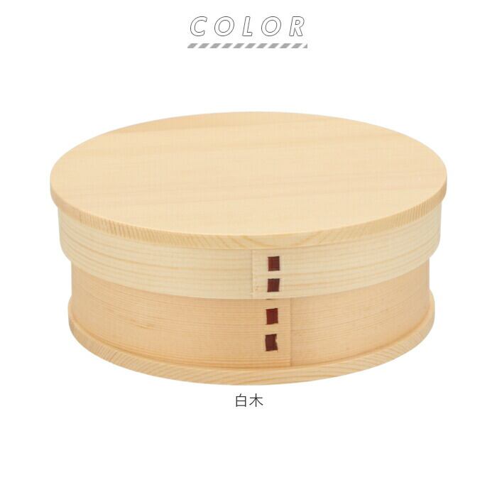 ■白木:白木の曲げわっぱは、材質となるスギの香りが漂い、美しい木目が楽しめる。持った時に木肌がしっくり手に馴染む優しさも、白木の魅力。