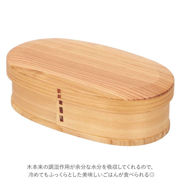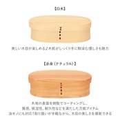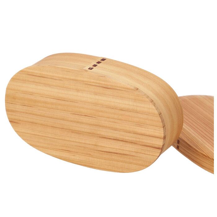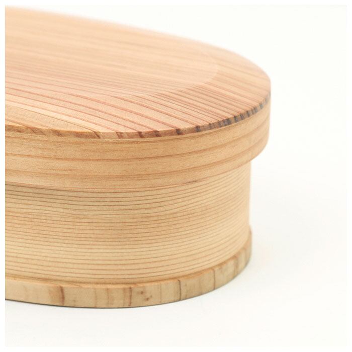 ・天然木の質感を活かした、温かみのあるお弁当箱。木本来の調湿作用が余分な水分を吸収してくれるので、冷めてもふっくらとした美味しいごはんが食べられる◎