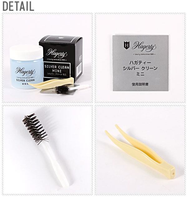 ハガティーの純銀製品専用洗浄液。大切なアクセサリーや人体を傷つけないよう、硫酸を使用していません。また、研磨剤は、アクセサリー用に開発された超粒子のものを使用しています。変色を取り除き、シルバー本来の輝きを取り戻します☆