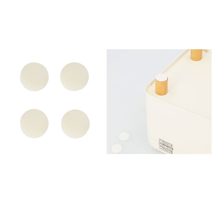 ・足の裏に貼って使えるすべり止めマット4枚付きで、テーブル等への傷を防止。