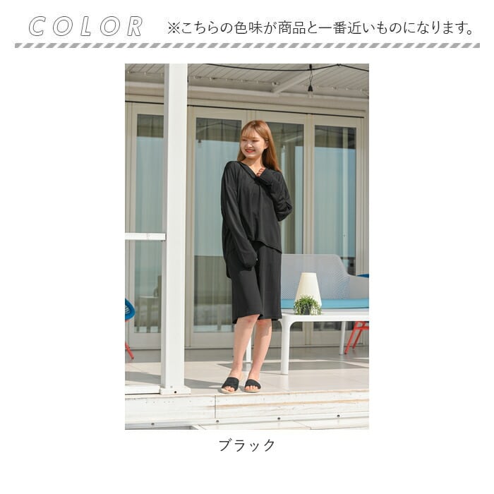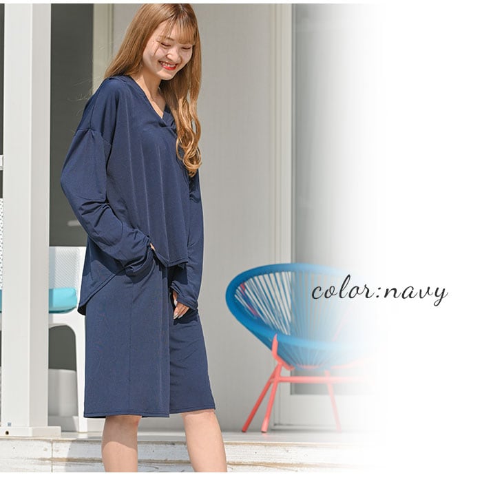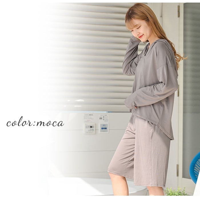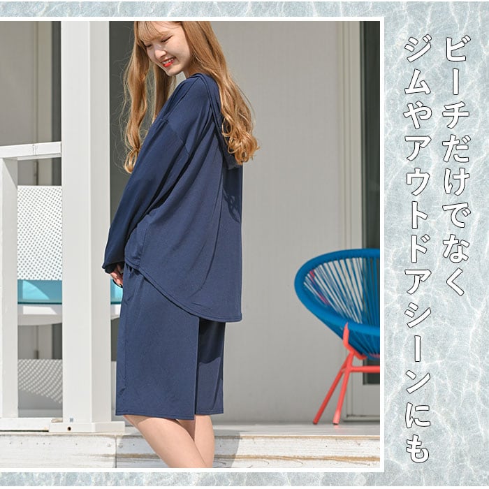 ラッシュガード レディース 上下セット 通販 長袖 おしゃれ パーカー プルオーバー 無地 シンプル バミューダパンツ セットアップ UVカット 紫外線対策 UPF50+ 接触冷感 ひんやり 冷感素材 吸水速乾 軽量 軽い 動きやすい ストレッチ Rash Guard ラッシュガード HW8236