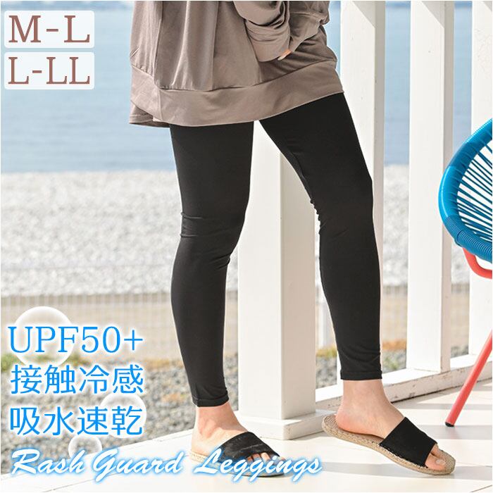 【廃盤】ラッシュガード レギンス レディース 通販 無地 シンプル 黒 ブラック M-L L-LL 海 プール 海水浴 UVカット 紫外線対策 UPF50+ 接触冷感 ひんやり 冷感素材 吸水速乾 軽