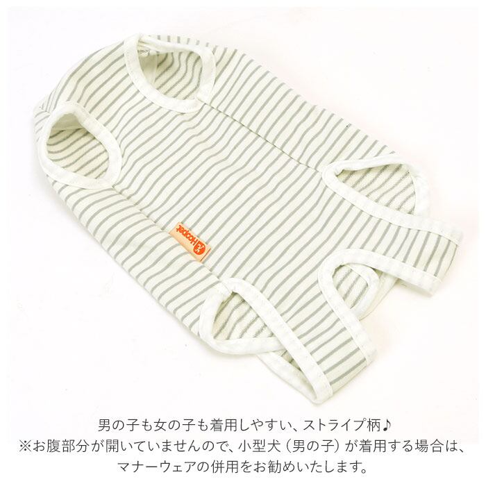 ・男の子も女の子も着用しやすい、ストライプ柄♪(※お腹部分が開いていませんので、小型犬(男の子)が着用する場合は、マナーウェアの併用をお勧めいたします。)
