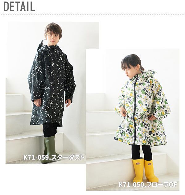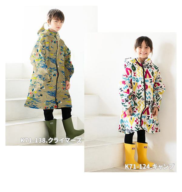 レインポンチョ kiu キッズ キウ 通販 レインコート カッパ 子ども用 ジュニア 子供 こども かわいい おしゃれ 通園 通学 小学校 小学生 幼稚園 保育園 撥水加工 はっ水 スリーブ付き 袖あり 透明窓付き ツバ フード 透湿 耐水 フルジップ 袖口 調節可能