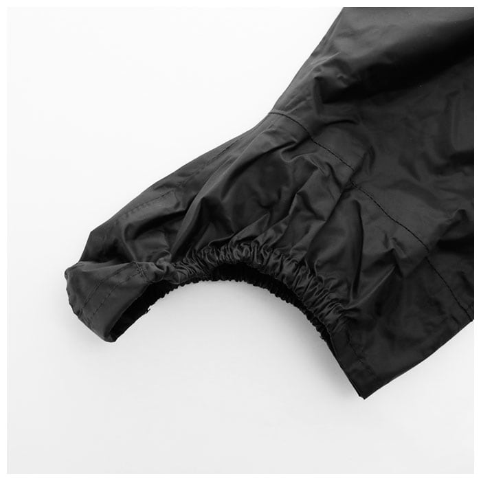 ・PVCラミネート加工された防水性の高い生地で雨粒をしっかり弾き、履き口と裾のゴム入りギャザーで雨の侵入を軽減。