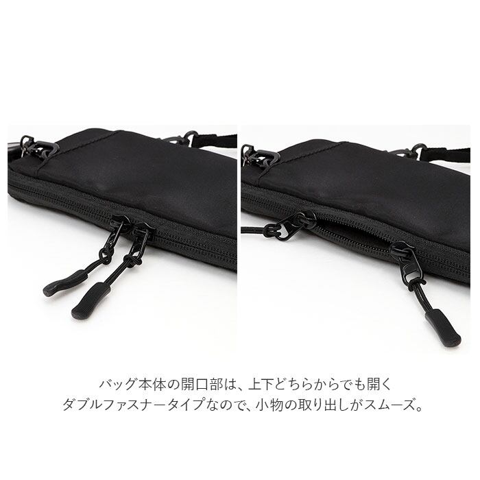 ・バッグ本体の開口部は、上下どちらからでも開くダブルファスナータイプなので、小物の取り出しがスムーズ。